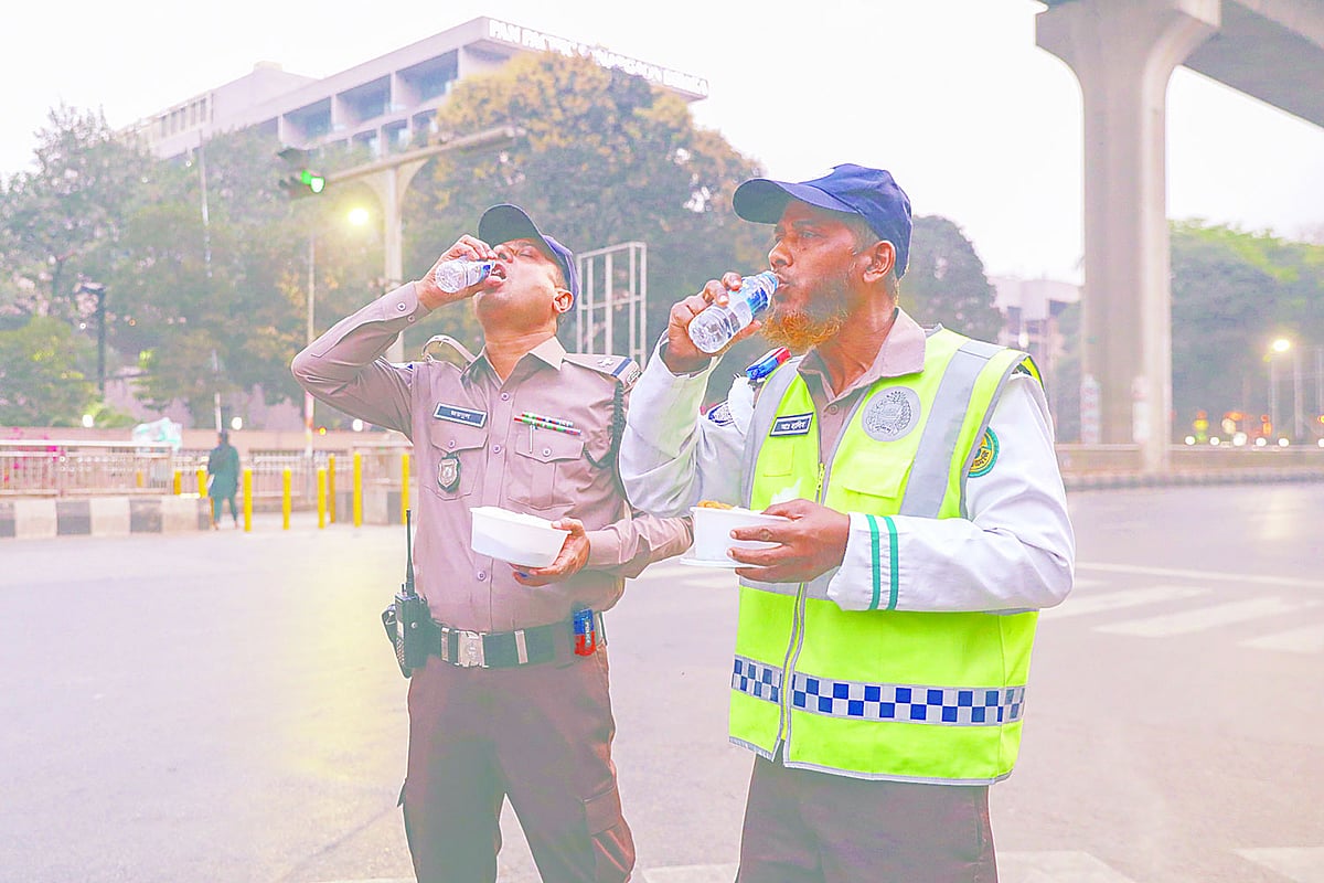 ঢাকা মহানগর পুলিশের (ডিএমপি) ট্রাফিক বিভাগ সূত্রে জানা যায়, প্রতিদিন সকাল সাড়ে ৭টা থেকে বেলা ২টা এবং বেলা ২টা থেকে রাত ১০টা পর্যন্ত দুই পালায় ট্রাফিক সদস্যরা সড়কে দায়িত্ব পালন করেন। এর মধ্যে বিকেলে যাঁদের দায়িত্ব পড়ে, তাঁদেরকে পুলিশের পক্ষ থেকে ইফতারি সরবরাহ করা হয়।