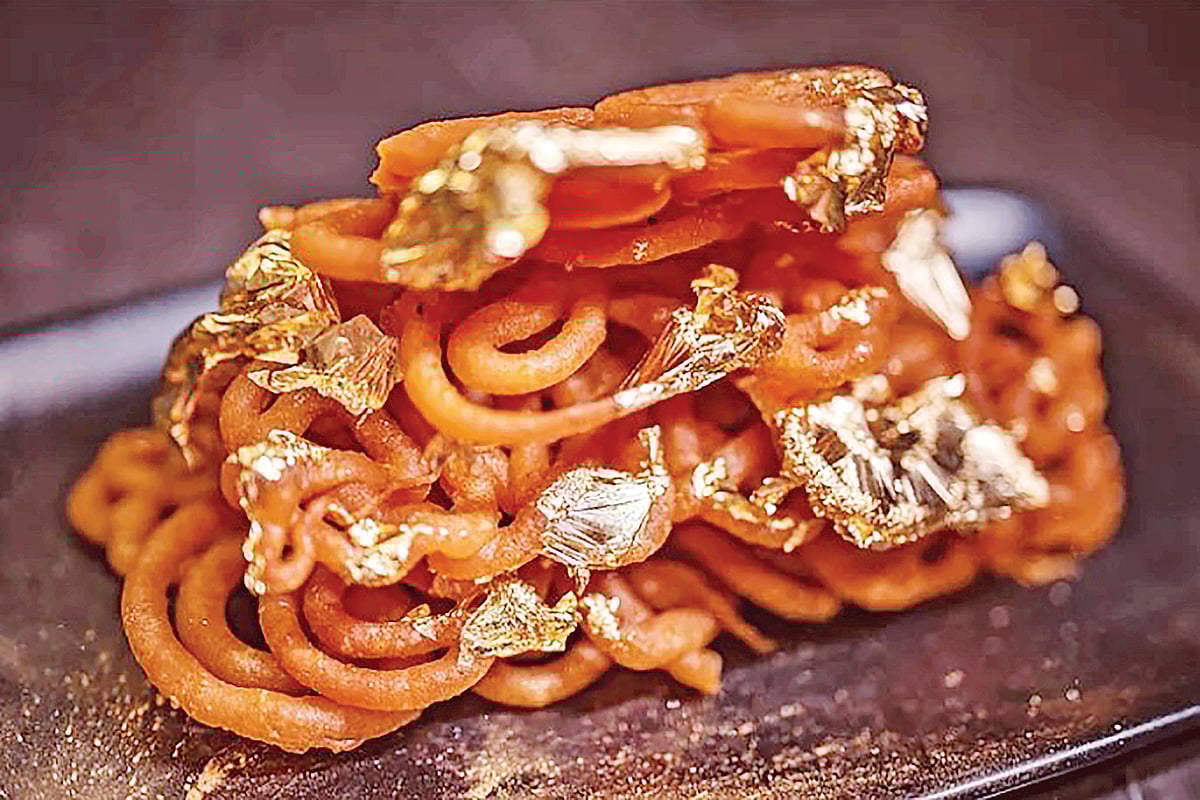 তোমার সামনে প্লেটে রাখা আছে গরম ও রসালো একটুকরো জিলাপি। কিন্তু জিলাপিটির গায়ের রং সাধারণ নয়, এটি মোড়ানো আছে রীতিমতো খাঁটি সোনার একটি চকচকে পাতলা আবরণ দিয়ে! হ্যাঁ, অবাক হলেও সত্যি যে বিশ্বের অনেক বিলাসবহুল রেস্তোরাঁয় মিষ্টি বা খাবারের ওপর খাওয়ার যোগ্য গোল্ডলিফ ব্যবহার করা হয়।